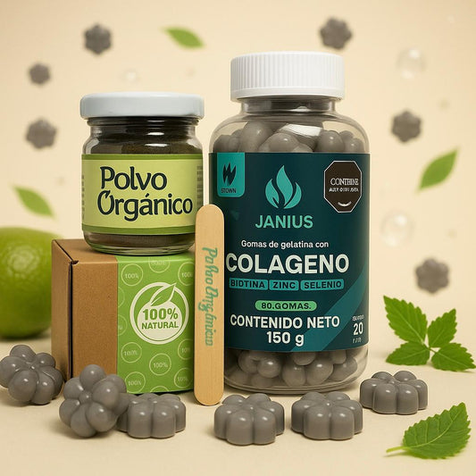Mientras el Polvo Orgánico impulsa tu metabolismo y apoya la reducción de medidas, las Gomas de Colágeno aportan nutrientes que te ayudan a lucir una piel radiante cada día y fortalecen tu sistema inmune.